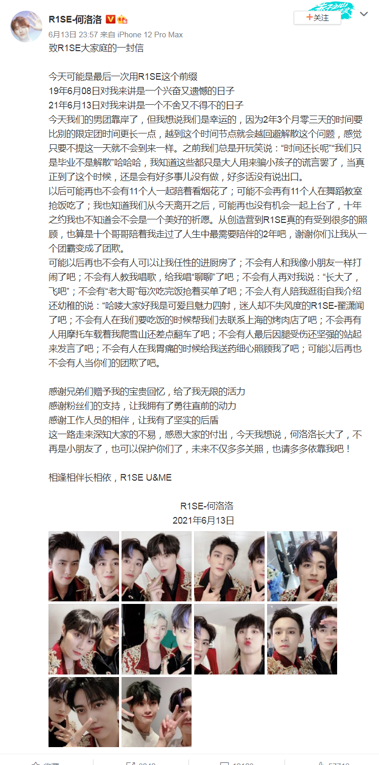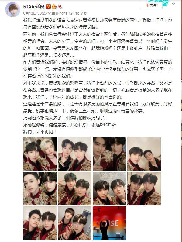 演唱会结束后,成员们也纷纷发文晒合影不舍告别,R1SE就算正式解散了。这是周震南时隔半年之后首次发微博,令人心疼。周震南本该是R1SE的门面,但是因为父母是“老赖”,影响了他的发展。