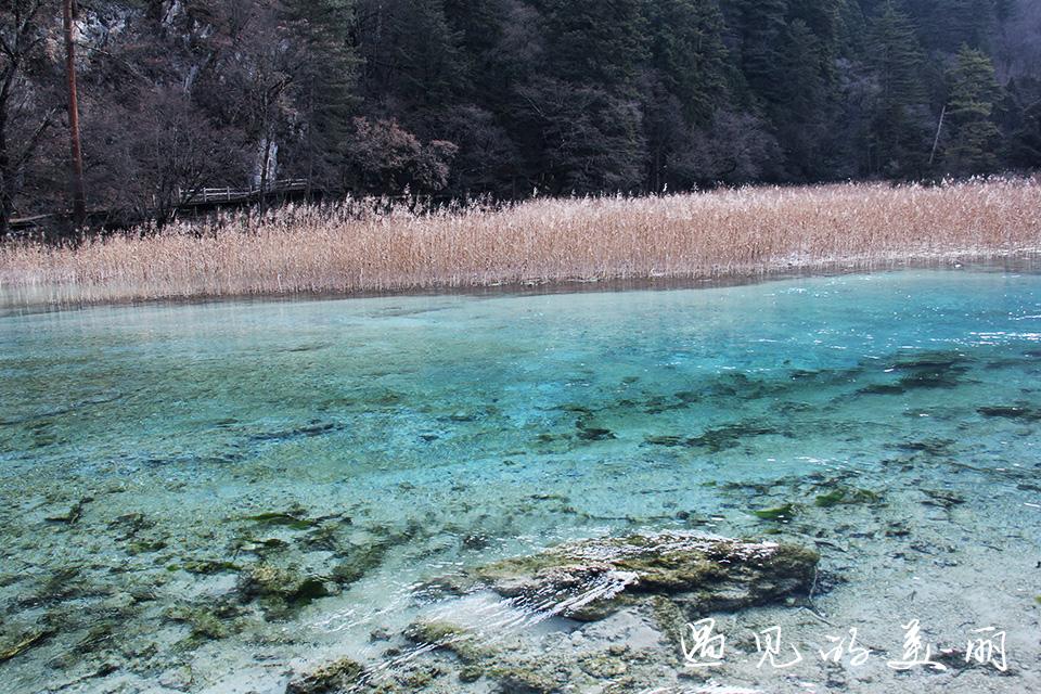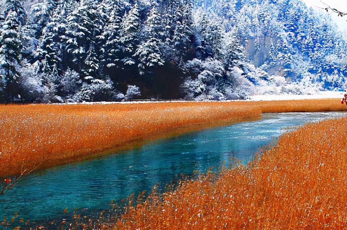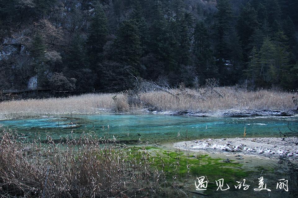 九寨沟官网图冬日的九寨卸下了秋天的华丽彩装,穿上了冬天的素衣。落雪为尘,罩住了远处的山峦与树林;流水成冰,封住了高处的海子与瀑布。这一刻的九寨分外宁静,冰雪童话世界顶多也只能这样。慢下来,细细品味这里的落雪、冰瀑与蓝冰。芦苇海芦苇海是我们进入九寨沟后看到的第一个海子。冬日的芦苇荡披上了一层银白色的霜,岸边有些许白雪,但是芦苇海并没结冰。白雪点缀着金黄色的芦苇荡,蓝色的海子略带碧绿,以曼妙的身姿舞动在芦苇荡之中。我承认,芦苇海已经将我深深地吸引了。