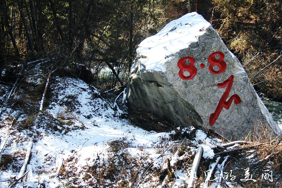 九寨沟珍珠滩8·8石从珍珠滩瀑布继续向下行走,目的地是镜海。路上你会看见“8·8石”。这块石头从哪里来?猜猜它到底有多重?2017年8月8日,九寨沟地震爆发后,一块巨大的石块从海拔2654米的山体滚落而下,跌落至河谷,巨大的冲击力使巨石的下端深深插入谷底,周边是被它轧断的树木,所过之处,森林植被尽遭摧毁,在山体中形成了一个巨大的沟槽。巨石与周边美丽的风景形成强烈对比,有一种格格不入的感觉。我们无法走到沟底,从上面看,感觉不出它很大。其实这块巨石高达9米之多,超过500吨重。它形成于3.2亿年的海洋环境,是九寨沟沧桑巨变的见证者。