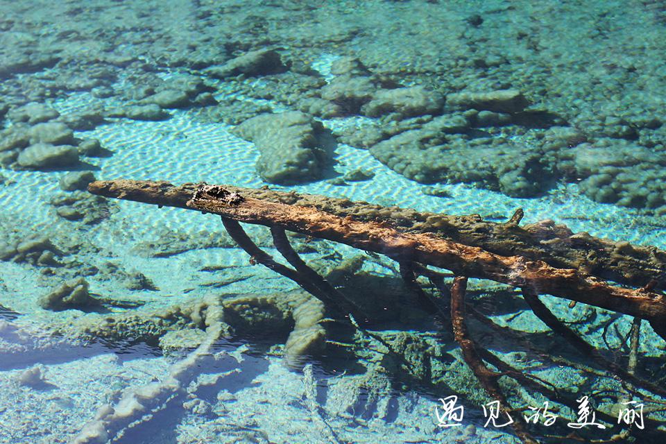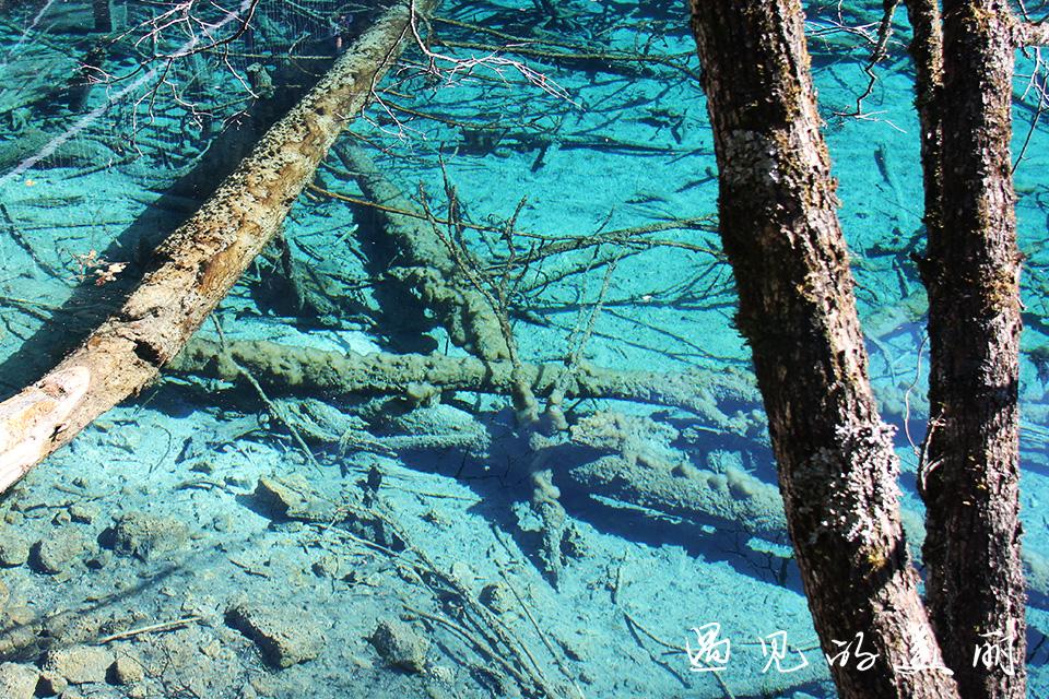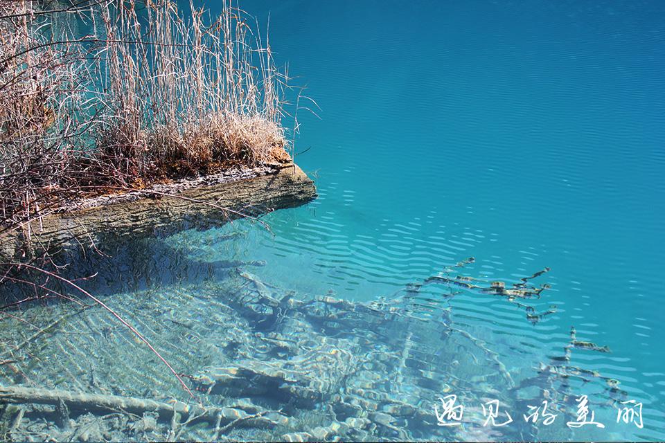 九寨沟长海五彩池五彩池是九寨沟最小的海子,但是它却是最为五彩斑斓的海子,它也是九寨沟众多海子中最为精粹的一个。我们走进五彩池的时候,已是下午,阳光已经无法直射到海子里了,即使这样,也无法阻挡它展现其五彩斑斓的绚丽色彩。海子的湖面部分呈碧蓝色,水底部分则呈橙红色,左边呈天蓝色,右边则呈橄榄绿色。即便是一个蓝色,在五彩池你也能看到不同层次的蓝。有大海特有的那种湛蓝色,有像宝石那样的深蓝色,也有像天空那样的浅蓝色。你也会有像我一样的疑问吗?为什么一左一右的两个海子(长海和五彩池),一个冰冻三尺,另一个却清澈透明呢?其实五彩池中的湖水是由位于高处的长海经地下补给的,由于地下四季常温不冻,维持在4℃左右,所以五彩池的湖水冬暖夏凉。好想把五彩池里色彩斑斓的湖水装一瓶带回家,但是如果你真的装进瓶子里,它和普通的矿泉水没太大区别,都是纯净透明的。那为什么五彩池的湖水会呈现出不一样的绚丽色彩呢?那是因为五彩池里生长着水绵、轮藻、小蕨等水生植物群落,而这些水生群落所含叶绿素深浅不同,在富含碳酸钙质的湖水里,能呈现不同的颜色。