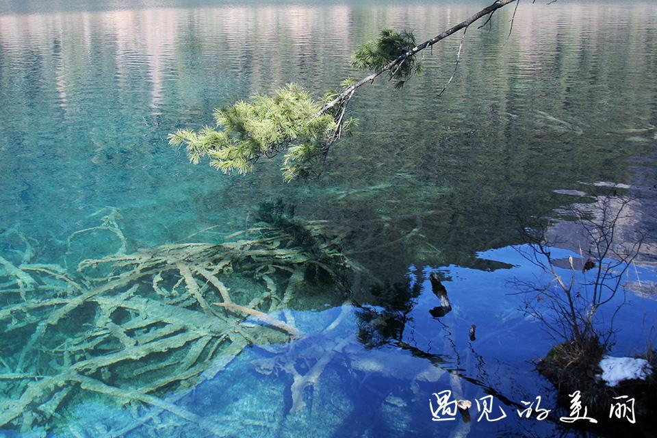 九寨沟五花海即便是在冬天,五花海也是不会结冰的,枯树交错在湖底,使得五花海的底部景观妙不可言,湖水一边是翠绿色的,一边是湛蓝色的,湖底的枯树由于钙化,变成一丛丛灿烂的珊瑚,在阳光的照射下,绚烂迷人。这里也是游客最多的景点,还好我们来的时候处于淡季,游人并不算多。无论在哪个地方拍照,都不会出现“人人人”的壮丽景观。淡季旅游的优点在这儿体现得淋漓尽致。