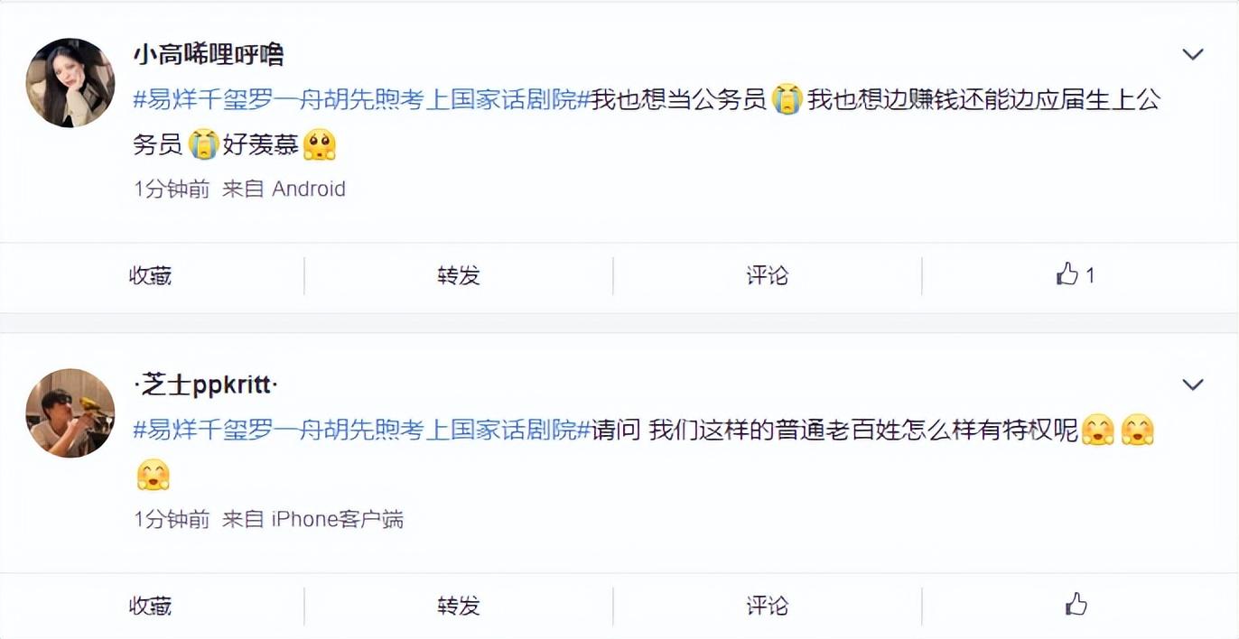 核心的问题在于,考取国家话剧院是有编制的,有钱的明星还要考编制、抢夺普通人的资源,戳中了普通人最敏感的神经。易烊千玺很清楚的知道这个问题的核心,所以在文中也很巧妙的给出了解释。他全文没提编制二字,只是阐述了自己报考国家话剧院是为了“尝试扩展自己的边界、不囿于现状,寻找自我内在的更多可能性。”其实这个解释很合理,难道易烊千玺会在国家话剧院朝九晚五的坐班、每个月拿固定的工资吗?我想这辈子都不可能,毕竟走到今天的易烊千玺,未来也不再会为工作和经济发愁了吧!而放弃入职国家话剧院,只能说易烊千玺大度并且放得下,同时也堪称人间清醒了。