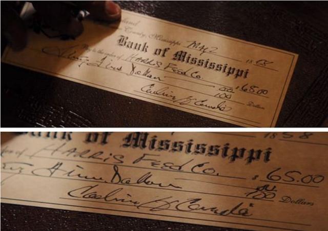 电影中能看到史蒂芬(山缪杰克森 饰)写完一张支票时,特写支票的这两幕,可以注意到两张支票的字迹不仅有些不一样,支票金额甚至从68变成了65。